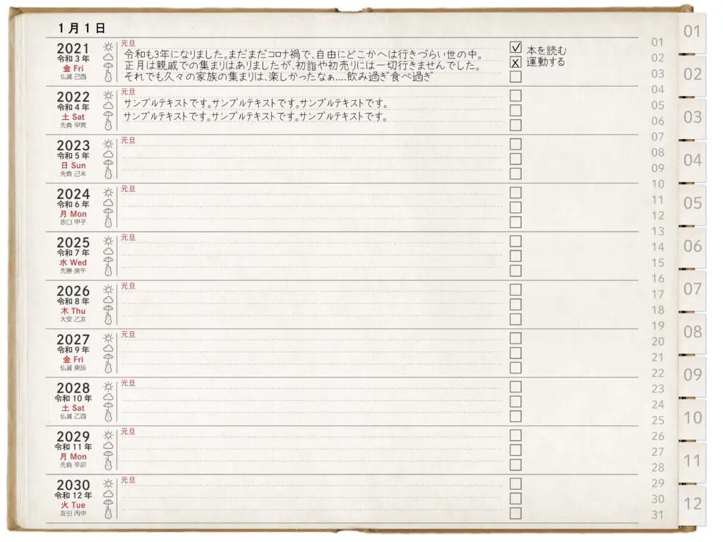 iPadとApple pencilがあれば簡単に始められます。ダウンロードしたテンプレートデータをアプリに読み込み、ふつうの手帳のように手書き入力ができます。