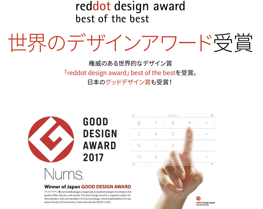 世界のデザインアワード受賞、日本のグッドデザイン賞も受賞しています。