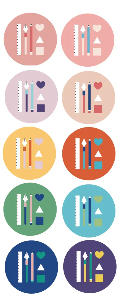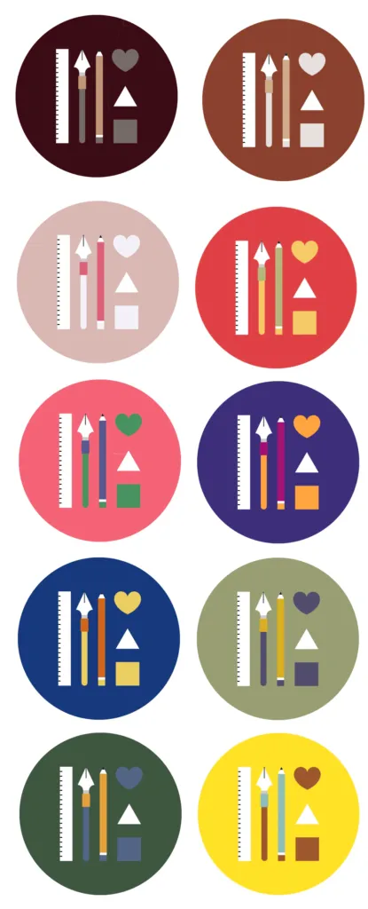 1つのパレットの列ごとに10パターンの配色が入っています。