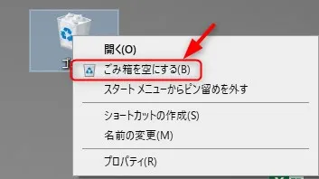 ごみ箱を右クリックしてごみ箱を空にするを押すと、ごみ箱の中身はすべて削除されます。
