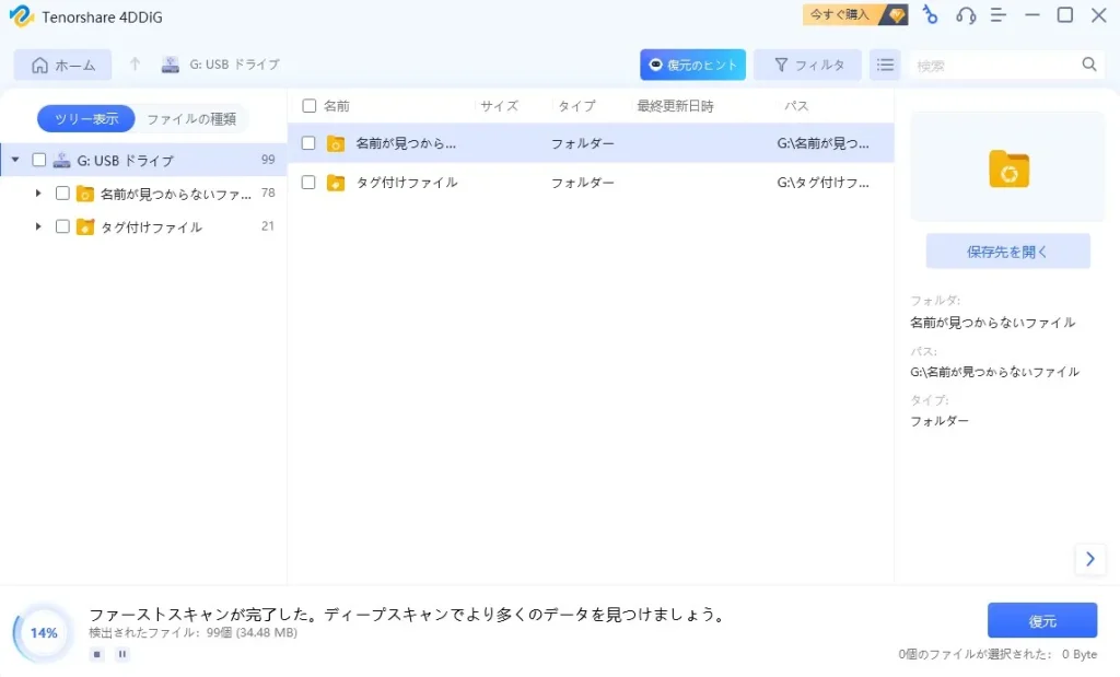 いままで。ごみ箱から消してしまったあとに必要となったデータや、USBメモリが故障して取り出せなくなったデータが多々ありますが、4DDiGを使えばすべて無事に復元できたことでしょう。