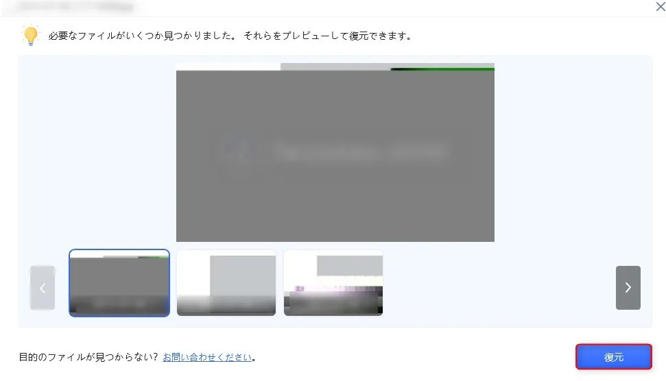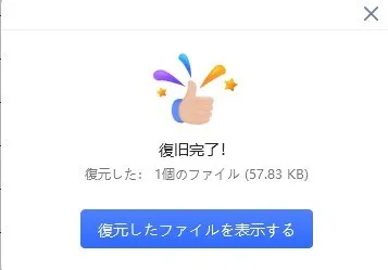 検索が終わったら、復元したいファイルを選択して復元して完了です。